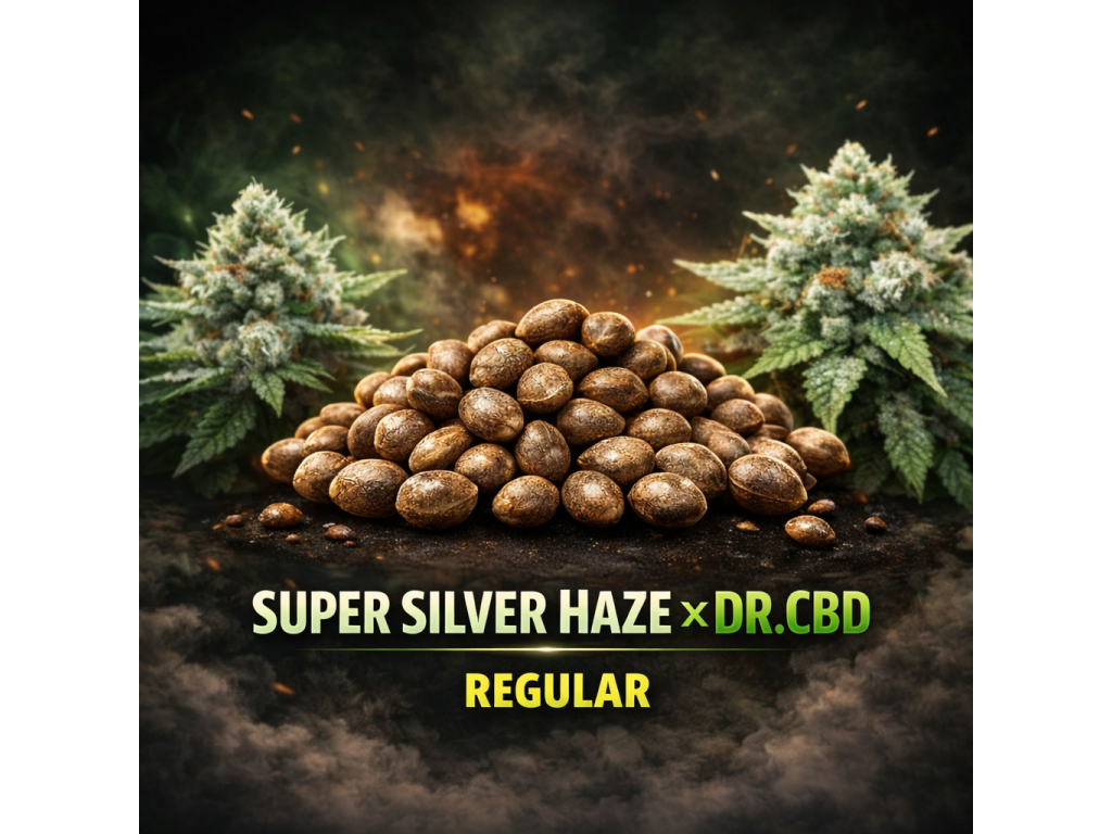 Super Silver Haze × Dr. CBD je vyvážený hybrid kombinující energickou genetiku Super Silver Haze s CBD linií Dr. CBD. Výsledkem je stabilní odrůda s typickou sativní strukturou, užšími listy a svěžím, lehce kořeněným aroma.